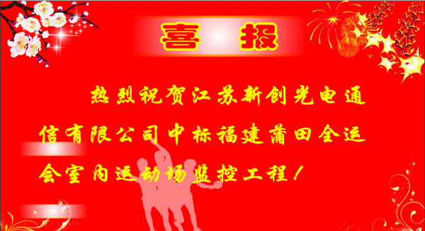 2010-01-11,江蘇新創(chuàng)全數(shù)字光端機中標福建蒲田全運會室內運動場監(jiān)控工程