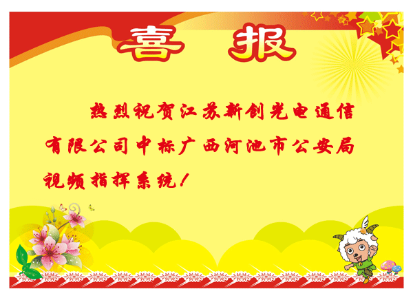 2010-02-03,江蘇新創中標YPbPr廣西河池市公安局視頻指揮系統。
