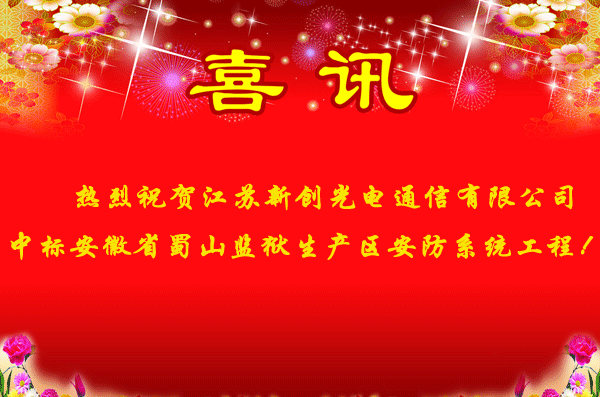 2010-03-02,江蘇新創中標安徽省蜀山監獄生產區安防系統工程。