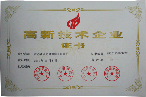 2012-04-10,江蘇新創(chuàng)喜獲高新技術(shù)企業(yè)。