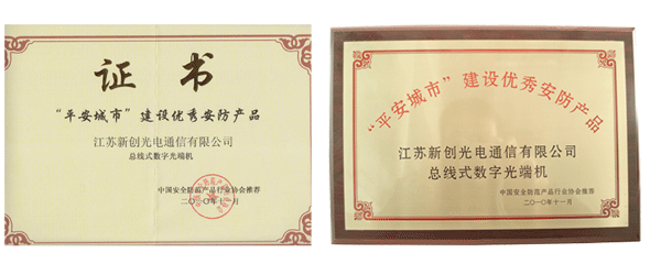 “平安城市”建設(shè)優(yōu)秀安防產(chǎn)品證書