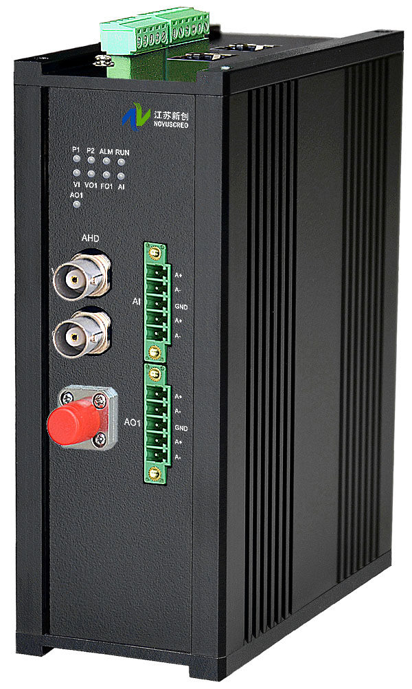 1進2出AHD模擬音頻光電分配器,卡儂/端子/3.5mm/RCA接口,獨立/冗余/總線供電(DC18~36V/5V),導軌,工業型 |