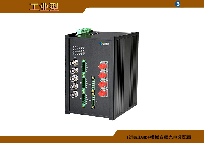 1進8出AHD模擬音頻光電分配器,卡儂/端子/3.5mm/RCA接口,獨立/冗余/總線供電(DC18~36V/5V),導軌,工業型 |