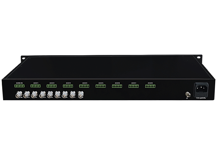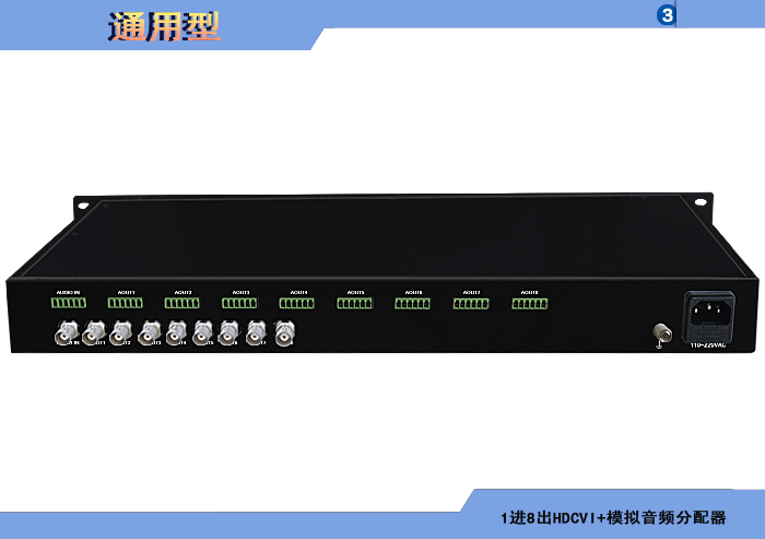 1進8出HDCVI模擬音頻分配器,卡儂/端子/3.5mm/RCA接口,獨立/冗余供電,機架,通用型 |