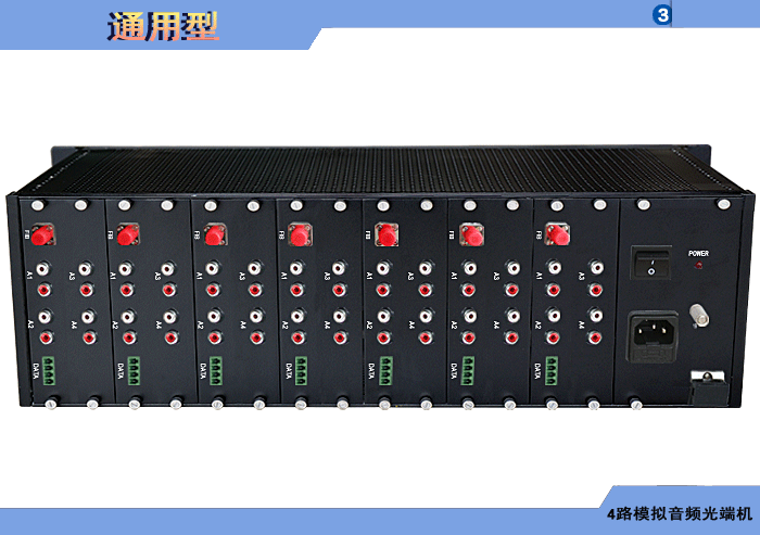 4路模擬音頻簡單型光端機發射機/接收機,數據可選,單模/多模/塑料,1/2纖,ST/FC/SC/LC/SFP光接口,15/20/25/32dB,獨立/冗余供電,插卡,通用型 |