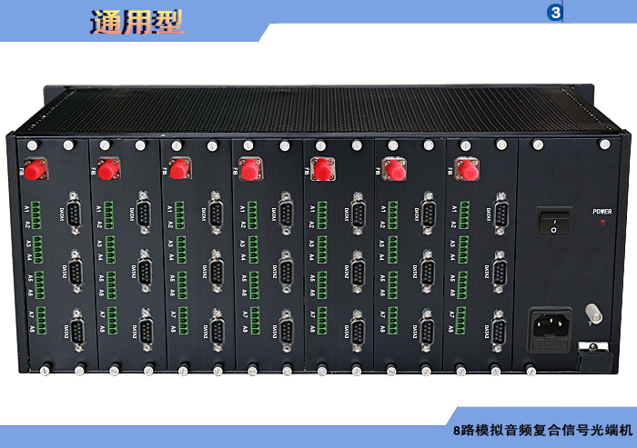 配置 1/2/3/4/8/16路模擬音頻復合信號型發射機/接收機,復合信號可選,單模/多模/塑料,1/2纖,獨立/冗余供電,機架,防水型