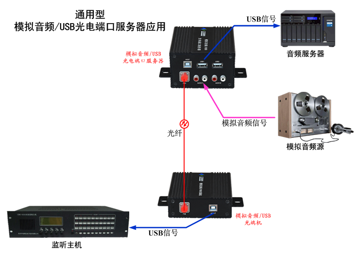 模擬音頻/USB光電端口服務器是江蘇新創自主研發創新,專門為USB口與多路模擬音頻接口通信而設計。通過使用本光電端口服務器,你可以輕松將CD播放機、調音臺、音頻錄放設備、話筒和音頻前置放大器、DVD、機頂盒、音頻信號發生器、聲納及聲音傳感檢測器、或任何AV信號源輸出的模擬音頻通過電纜或單模或多模或塑料光纖接口與中心的錄放系統、監聽監控主機、中央控制系統、聲納控制系統、音樂制作中…