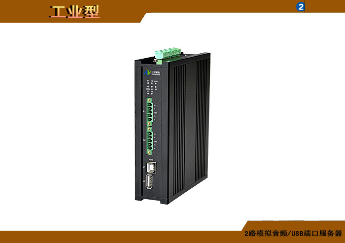 2路模擬音頻/USB端口服務器,卡儂/工業接線子/3.5mm/RCA接口,平衡/非平衡,立體聲/單聲道,1路USB主口輸入、可選多路下游口輸出,可選內置數字隔離器,最大隔離電壓2500/5000Vrms,可選內置5/10KA浪涌保護器,獨立/冗余/總線供電(DC18~36V/5V),導軌,工業型 |
