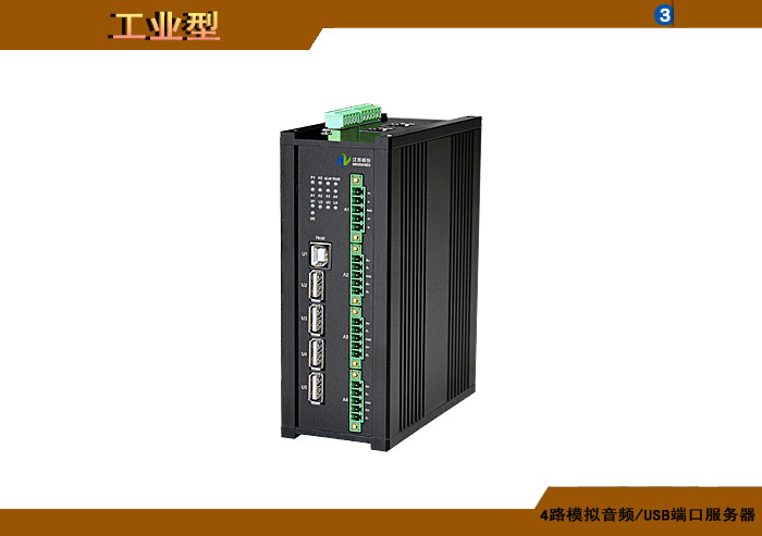 4路模擬音頻/USB端口服務器,卡儂/工業接線子/3.5mm/RCA接口,平衡/非平衡,立體聲/單聲道,1路USB主口輸入、可選多路下游口輸出,可選內置數字隔離器,最大隔離電壓2500/5000Vrms,可選內置5/10KA浪涌保護器,獨立/冗余/總線供電(DC18~36V/5V),導軌,工業型 |
