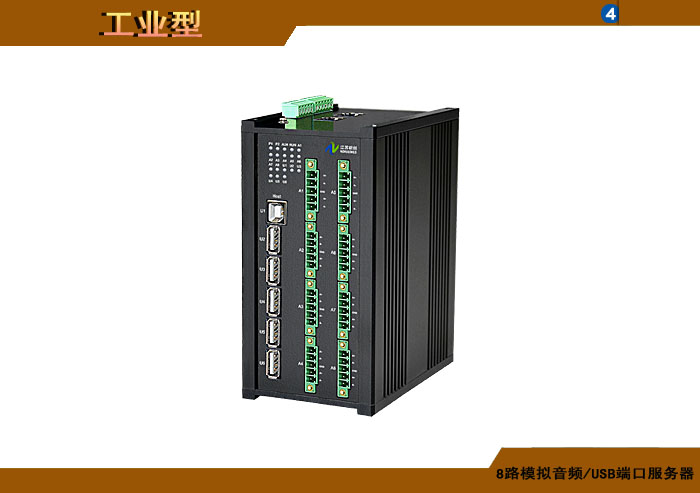 8路模擬音頻/USB端口服務器,卡儂/工業接線子/3.5mm/RCA接口,平衡/非平衡,立體聲/單聲道,1路USB主口輸入、可選多路下游口輸出,可選內置數字隔離器,最大隔離電壓2500/5000Vrms,可選內置5/10KA浪涌保護器,獨立/冗余/總線供電(DC18~36V/5V),導軌,工業型 |