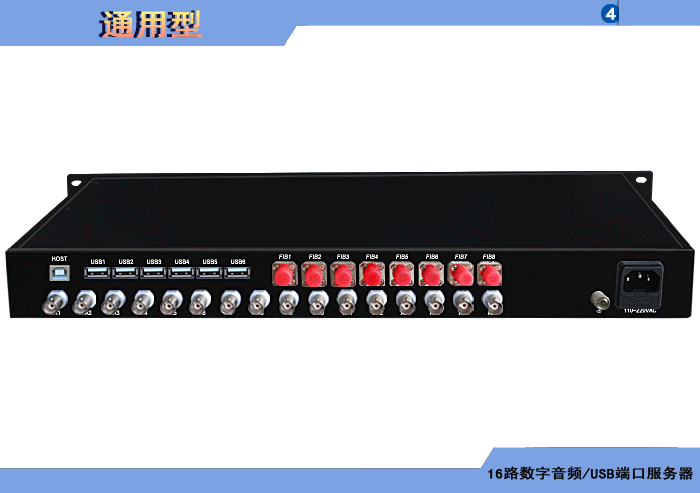 16路數(shù)字音頻/USB光電端口服務(wù)器,AES平衡/非平衡/SPDIF/光纖數(shù)字音頻,1路USB主口輸入、可選多路下游口輸出,可選多路USB和數(shù)字音頻電纜或光纖接口,可選內(nèi)置數(shù)字隔離器,最大隔離電壓2500/5000Vrms,可選內(nèi)置5/10KA浪涌保護器,獨立/冗余/總線供電(DC18~36V/5V),壁掛/插卡/機架,通用型 |