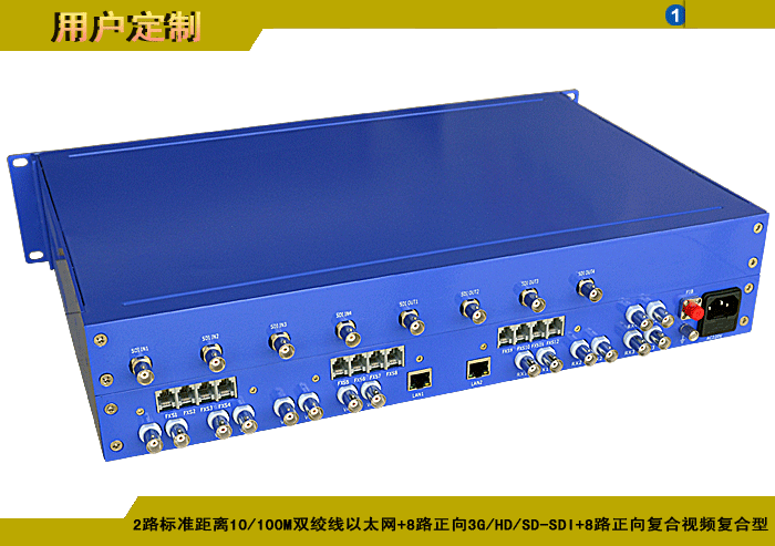 | 配置 | 4路特長(zhǎng)距離10/100M同軸電纜以太網(wǎng)+4路正向3G/HD/SD-SDI+4路正向復(fù)合視頻復(fù)合信號(hào)型光端機(jī)發(fā)射機(jī)/接收機(jī),1/2/4/8擴(kuò)容口可選,復(fù)合信號(hào)可選,單模/多模/塑料,1/2纖,ST/FC/SC/LC/SFP光接口,15/20/25/32dB,獨(dú)立/冗余/總線供電(DC18~36V/5V),導(dǎo)軌,工業(yè)型,非網(wǎng)管/網(wǎng)管/帶光纖數(shù)字診斷網(wǎng)管 | ||