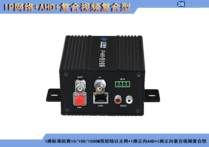 1路特長距離10/100M雙絞線以太網+1路正向AHD+1路正向復合視頻復合信號型光端機發射機/接收機,1/2/4/8擴容口可選,復合信號可選,單模/多模/塑料,1/2纖,ST/FC/SC/LC/SFP光接口,15/20/25/32dB,獨立/冗余/總線供電(DC18~36V/5V),導軌,工業型,非網管/網管/帶光纖數字診斷網管 |