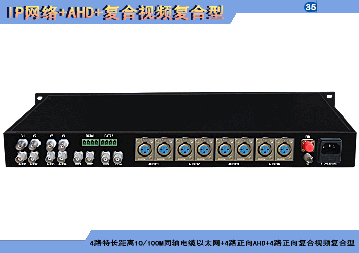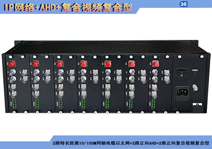 1/2/4路特長距離10/100M同軸電纜以太網+1/2/4路正向AHD+1/2/4路正向復合視頻復合信號型光端機發射機/接收機,復合信號可選,單模/多模/塑料,1/2纖,獨立/冗余供電,機架,高可靠型 |