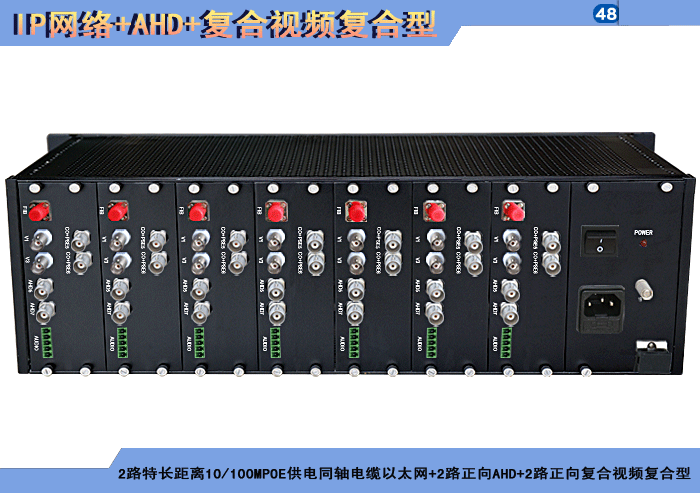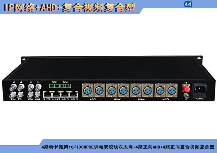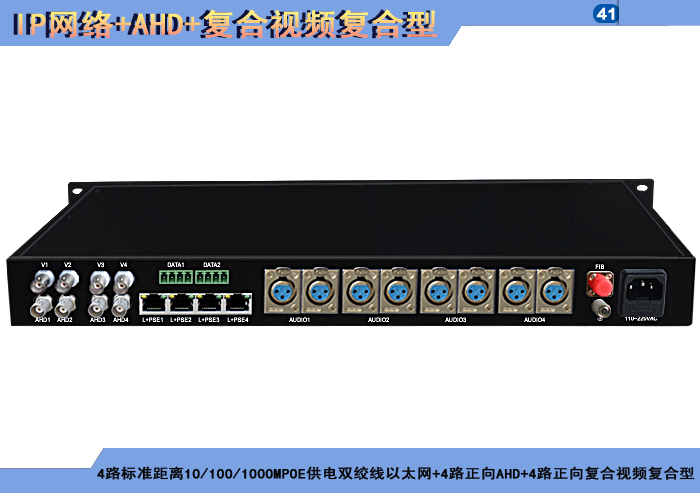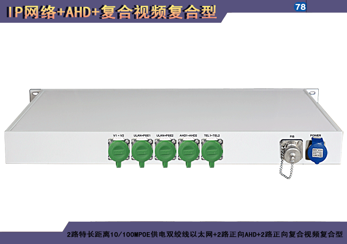 1/2/4路特長距離10/100MPOE供電雙絞線以太網+1/2/4路正向AHD+1/2/4路正向復合視頻復合信號型光端機發射機/接收機,復合信號可選,單模/多模/塑料,1/2纖,獨立/冗余供電,機架,高可靠型 |
