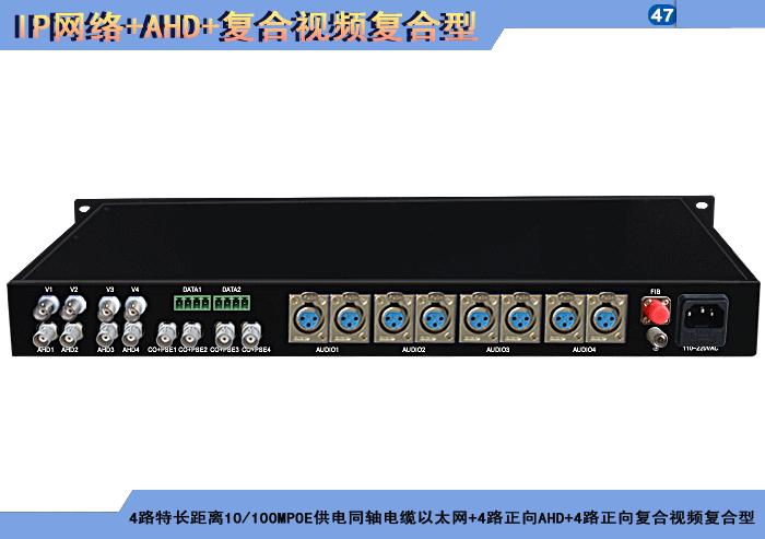 1/2/4路特長距離10/100MPOE供電同軸電纜以太網+1/2/4路正向AHD+1/2/4路正向復合視頻復合信號型光端機發射機/接收機,復合信號可選,單模/多模/塑料,1/2纖,獨立/冗余供電,機架,防水型 |