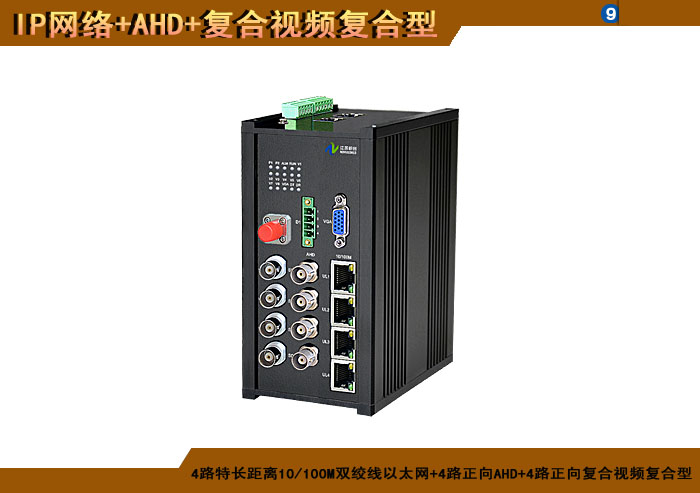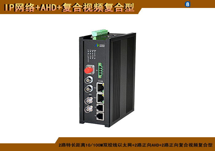 1/2/4路標準距離10/100MPOE供電雙絞線以太網+1/2/4路正向AHD+1/2/4路正向復合視頻復合信號型光端機發射機/接收機,復合信號可選,單模/多模/塑料,1/2纖,獨立/冗余供電,壁掛,高可靠型 |