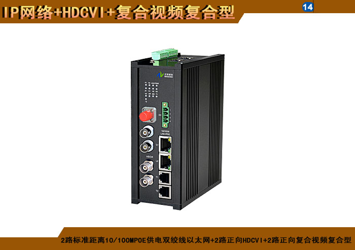 2路特長(zhǎng)距離10/100MPOE供電雙絞線以太網(wǎng)+2路正向HDCVI+2路正向復(fù)合視頻復(fù)合信號(hào)型光端機(jī)發(fā)射機(jī)/接收機(jī),1/2/4/8擴(kuò)容口可選,復(fù)合信號(hào)可選,單模/多模/塑料,1/2纖,ST/FC/SC/LC/SFP光接口,15/20/25/32dB,獨(dú)立/冗余/總線供電(DC18~36V/5V),導(dǎo)軌,工業(yè)型,非網(wǎng)管/網(wǎng)管/帶光纖數(shù)字診斷網(wǎng)管 |