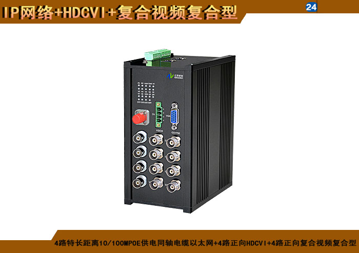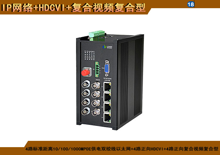 4路特長(zhǎng)距離10/100MPOE供電同軸電纜以太網(wǎng)+4路正向HDCVI+4路正向復(fù)合視頻復(fù)合信號(hào)型光端機(jī)發(fā)射機(jī)/接收機(jī),1/2/4/8擴(kuò)容口可選,復(fù)合信號(hào)可選,單模/多模/塑料,1/2纖,ST/FC/SC/LC/SFP光接口,15/20/25/32dB,獨(dú)立/冗余/總線供電(DC18~36V/5V),導(dǎo)軌,工業(yè)型,非網(wǎng)管/網(wǎng)管/帶光纖數(shù)字診斷網(wǎng)管 |