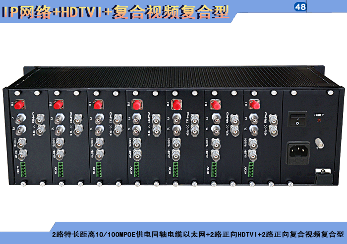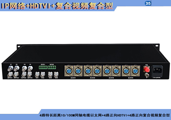 1/2/4路特長距離10/100M同軸電纜以太網+1/2/4路正向HDTVI+1/2/4路正向復合視頻復合信號型光端機發射機/接收機,復合信號可選,單模/多模/塑料,1/2纖,獨立/冗余供電,機架,高可靠型 |