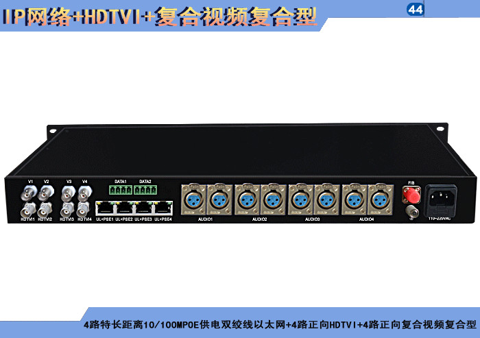 1/2/4路特長距離10/100MPOE供電雙絞線以太網+1/2/4路正向HDTVI+1/2/4路正向復合視頻復合信號型光端機發射機/接收機,復合信號可選,單模/多模/塑料,1/2纖,獨立/冗余供電,機架,防水型 |