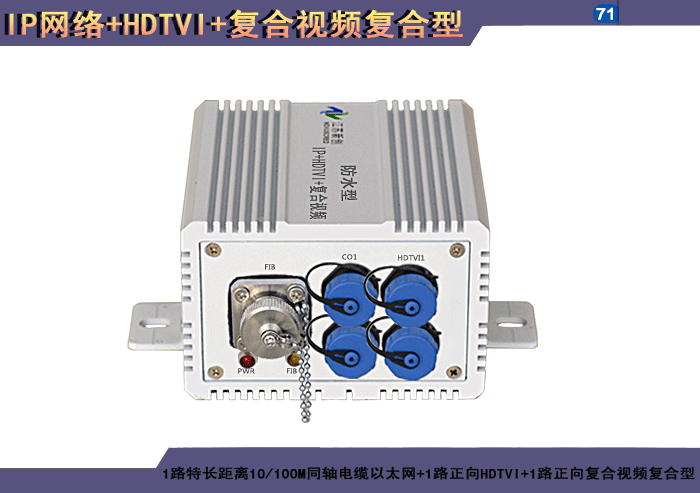 1/2/4路特長距離10/100MPOE供電同軸電纜以太網+1/2/4路正向HDTVI+1/2/4路正向復合視頻復合信號型光端機發射機/接收機,復合信號可選,單模/多模/塑料,1/2纖,獨立/冗余供電,壁掛,防水型 |