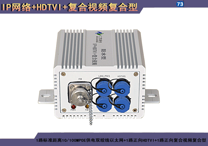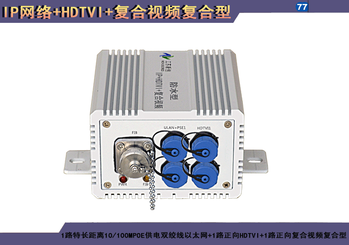 1/2/4路標準距離10/100MPOE供電雙絞線以太網+1/2/4路正向HDTVI+1/2/4路正向復合視頻復合信號型光端機發射機/接收機,復合信號可選,單模/多模/塑料,1/2纖,獨立/冗余供電,壁掛,防水型 |