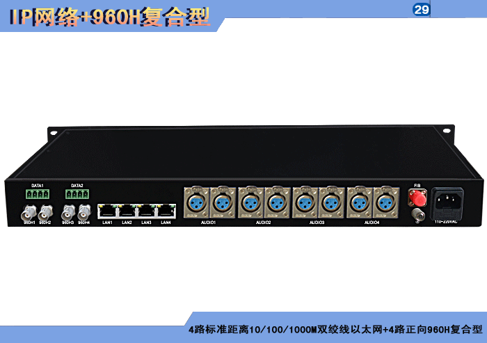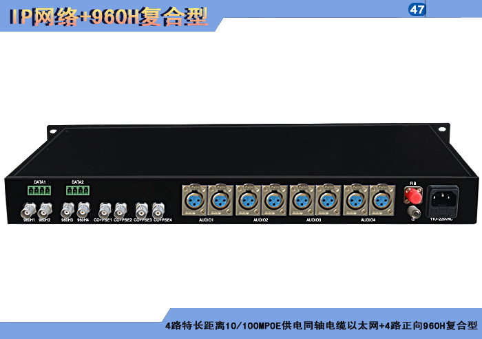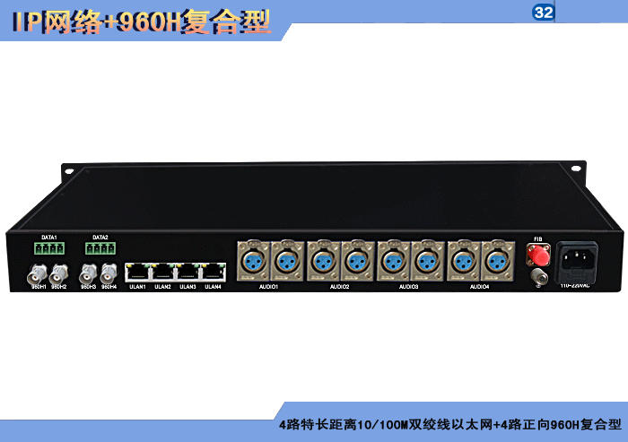 1/2/4路特長距離10/100M雙絞線以太網(wǎng)+1/2/4路正向960H復(fù)合信號型光端機發(fā)射機/接收機,復(fù)合信號可選,單模/多模/塑料,1/2纖,獨立/冗余供電,機架,高可靠型 |