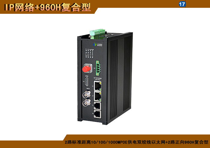 2路特長距離10/100MPOE供電雙絞線以太網(wǎng)+2路正向960H復(fù)合信號型光端機發(fā)射機/接收機,1/2/4/8擴容口可選,復(fù)合信號可選,單模/多模/塑料,1/2纖,ST/FC/SC/LC/SFP光接口,15/20/25/32dB,獨立/冗余/總線供電(DC18~36V/5V),導(dǎo)軌,工業(yè)型,非網(wǎng)管/網(wǎng)管/帶光纖數(shù)字診斷網(wǎng)管 |