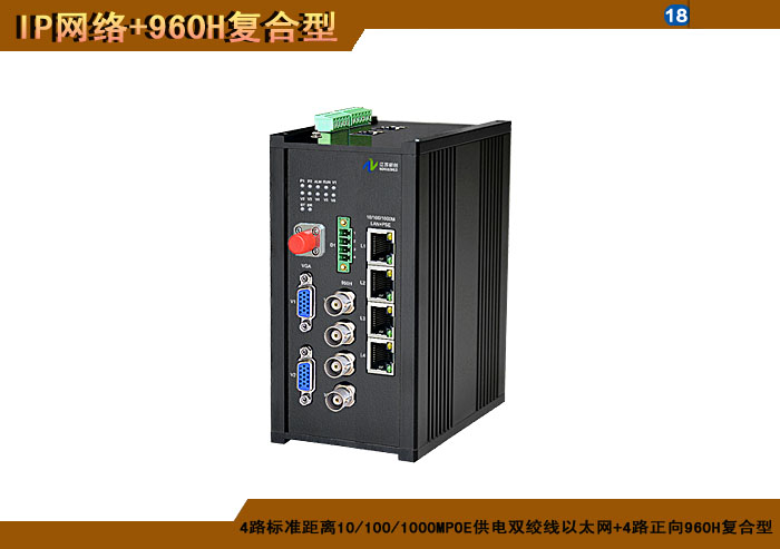 4路標(biāo)準(zhǔn)距離10/100/1000MPOE供電雙絞線以太網(wǎng)+4路正向960H復(fù)合信號型光端機發(fā)射機/接收機,1/2/4/8擴容口可選,復(fù)合信號可選,單模/多模/塑料,1/2纖,ST/FC/SC/LC/SFP光接口,15/20/25/32dB,獨立/冗余/總線供電(DC18~36V/5V),導(dǎo)軌,工業(yè)型,非網(wǎng)管/網(wǎng)管/帶光纖數(shù)字診斷網(wǎng)管 |