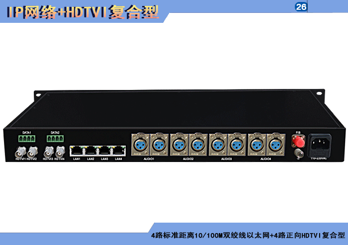 1/2/4路特長距離10/100M雙絞線以太網+1/2/4路正向HDTVI復合信號型光端機發射機/接收機,復合信號可選,單模/多模/塑料,1/2纖,獨立/冗余供電,機架,高可靠型 |