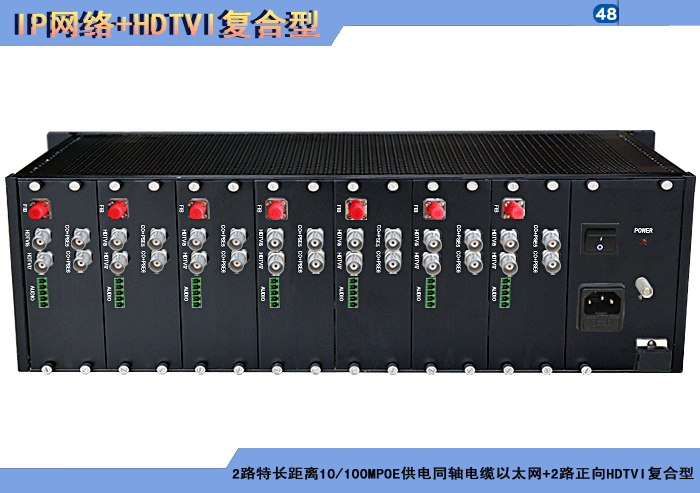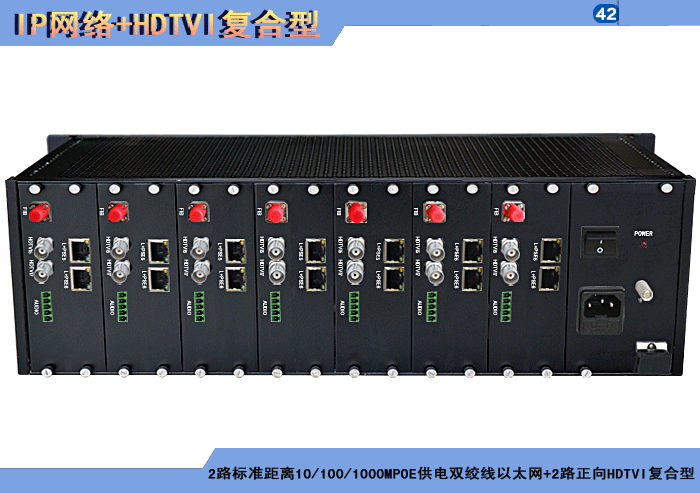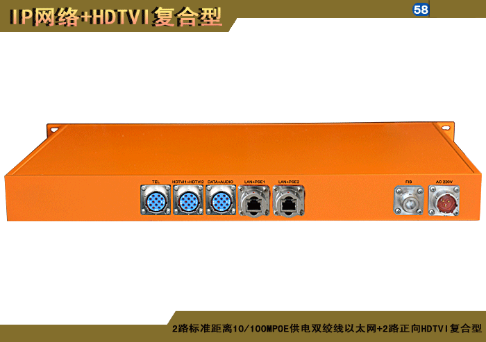 1/2/4路特長距離10/100MPOE供電雙絞線以太網+1/2/4路正向HDTVI復合信號型光端機發射機/接收機,復合信號可選,單模/多模/塑料,1/2纖,獨立/冗余供電,機架,高可靠型 |