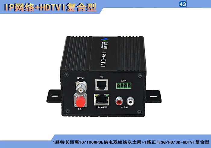 1路特長距離10/100MPOE供電雙絞線以太網+1路正向HDTVI復合信號型光端機發射機/接收機,1/2/4/8擴容口可選,復合信號可選,單模/多模/塑料,1/2纖,ST/FC/SC/LC/SFP光接口,15/20/25/32dB,獨立/冗余/總線供電(DC18~36V/5V),導軌,工業型,非網管/網管/帶光纖數字診斷網管 |