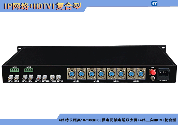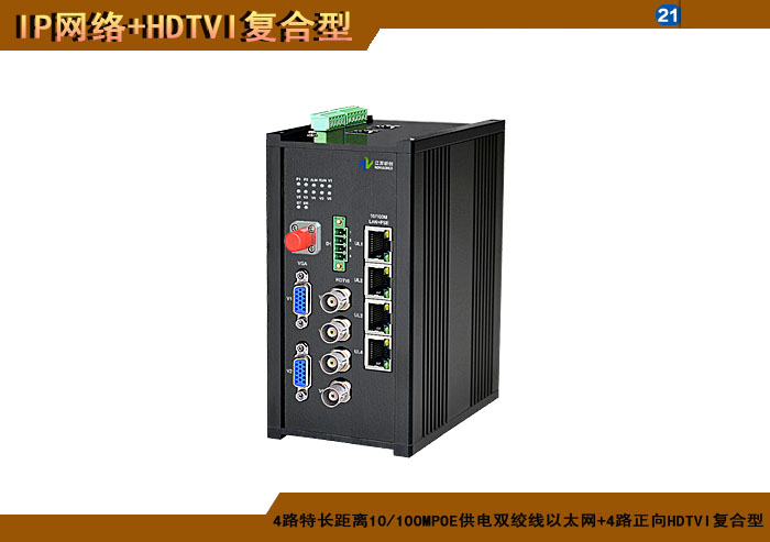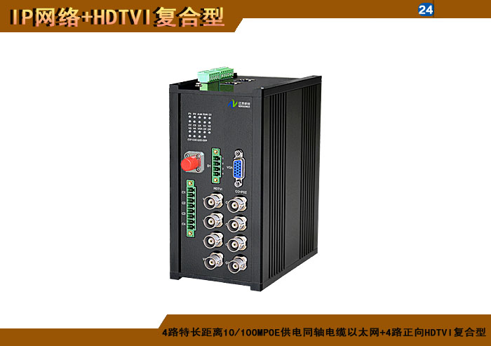 1/2/4路特長距離10/100MPOE供電雙絞線以太網+1/2/4路正向HDTVI復合信號型光端機發射機/接收機,復合信號可選,單模/多模/塑料,1/2纖,獨立/冗余供電,機架,防水型 |