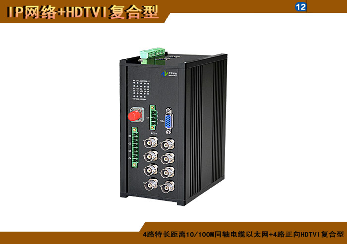 1/2/4路特長距離10/100M雙絞線以太網+1/2/4路正向HDTVI復合信號型光端機發射機/接收機,復合信號可選,單模/多模/塑料,1/2纖,獨立/冗余供電,壁掛,防水型 |