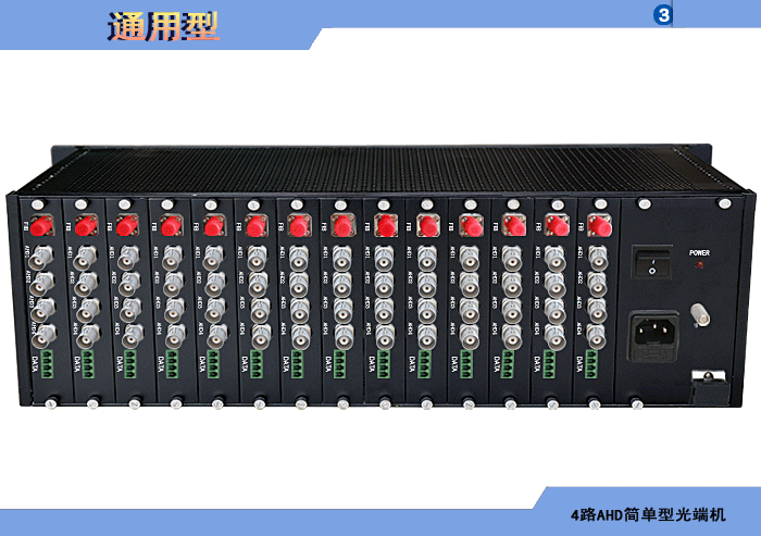 配置 1/2/3/4/8/16路AHD簡單型光端機發射機/接收機,數據可選,單模/多模/塑料,1/2纖,獨立/冗余供電,機架,高可靠型