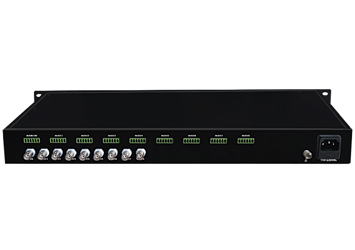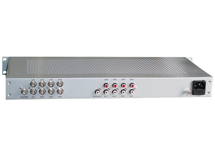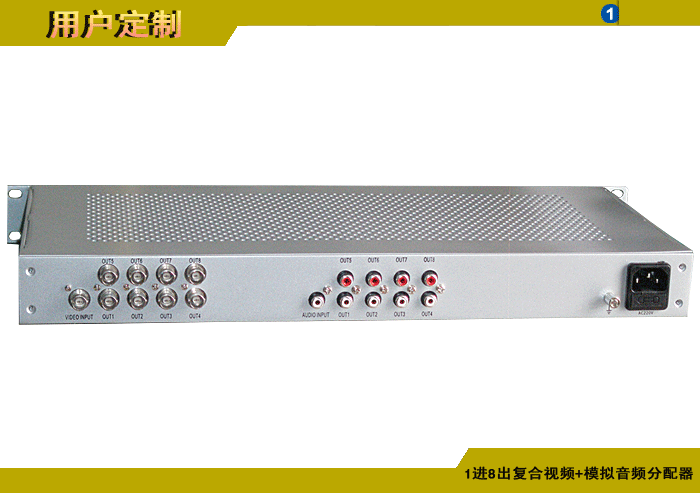 1進8出復合視頻模擬音頻分配器,卡儂/端子/3.5mm/RCA接口,獨立/冗余供電,機架,通用型 |