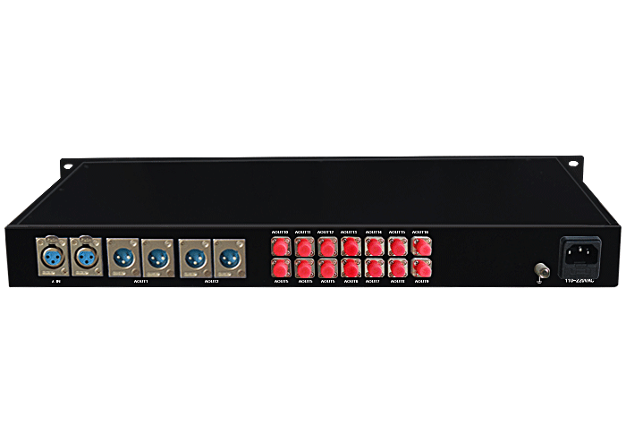 1進16出模擬音頻光電分配器,卡儂/工業接線子/3.5mm/RCA接口,平衡/非平衡,立體聲/單聲道,獨立/冗余供電,機架,通用型 |
