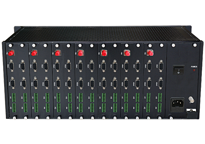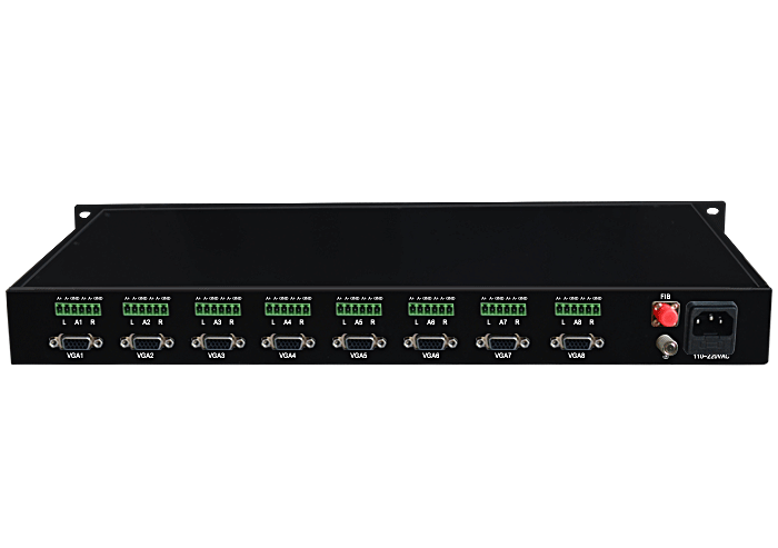 8路VGA高清視頻大屏顯示遠(yuǎn)程輸出發(fā)射光端機(jī),,模擬/數(shù)字音頻可選,單模/多模,1/2纖,ST/FC/SC/LC/SFP光接口,1U機(jī)架,通用型,非網(wǎng)管/網(wǎng)管/帶光纖數(shù)字診斷網(wǎng)管 |