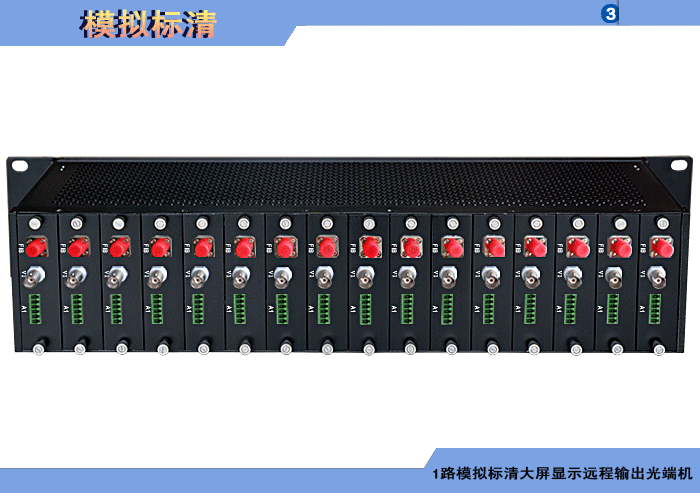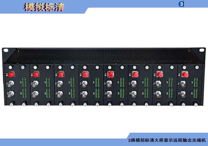 4路模擬標清視頻大屏顯示遠程輸出發射光端機,,模擬/數字音頻可選,單模/多模,1/2纖,ST/FC/SC/LC/SFP光接口,3U插卡,通用型,非網管/網管/帶光纖數字診斷網管 |