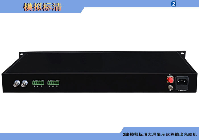 2路模擬標清視頻大屏顯示遠程輸出發射光端機,,模擬/數字音頻可選,單模/多模,1/2纖,ST/FC/SC/LC/SFP光接口,1U機架,通用型,非網管/網管/帶光纖數字診斷網管 |