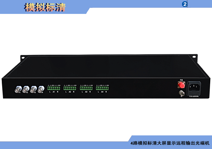 4路模擬標清視頻大屏顯示遠程輸出發射光端機,,模擬/數字音頻可選,單模/多模,1/2纖,ST/FC/SC/LC/SFP光接口,1U機架,通用型,非網管/網管/帶光纖數字診斷網管 |