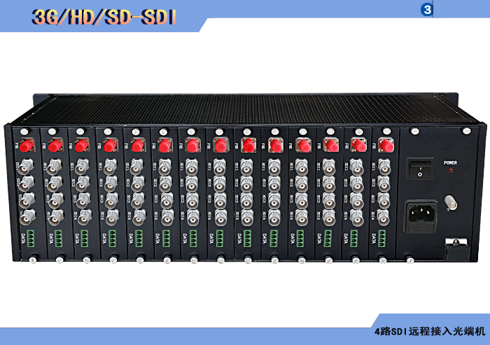4路SDI高清視頻遠(yuǎn)程接入接收光端機(jī),RS-232/485/422控制數(shù)據(jù)可選,單模/多模,1/2纖,ST/FC/SC/LC/SFP光接口,3U插卡,通用型,非網(wǎng)管/網(wǎng)管/帶光纖數(shù)字診斷網(wǎng)管 |
