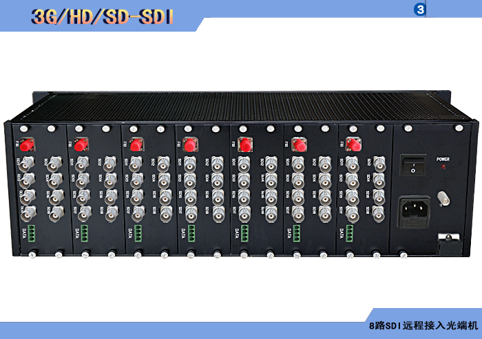 8路SDI高清視頻遠(yuǎn)程接入接收光端機(jī),RS-232/485/422控制數(shù)據(jù)可選,單模/多模,1/2纖,ST/FC/SC/LC/SFP光接口,3U插卡,通用型,非網(wǎng)管/網(wǎng)管/帶光纖數(shù)字診斷網(wǎng)管 |