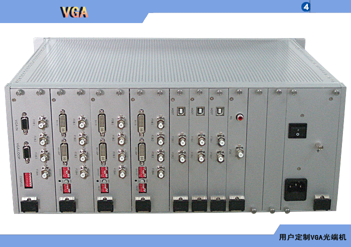 4路VGA高清視頻遠程接入接收光端機,RS-232/485/422控制數據可選,單模/多模,1/2纖,ST/FC/SC/LC/SFP光接口,3U插卡,通用型,非網管/網管/帶光纖數字診斷網管 |