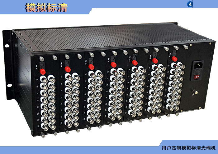 4路模擬標清視頻遠程接入接收光端機,RS-232/485/422控制數據可選,單模/多模,1/2纖,ST/FC/SC/LC/SFP光接口,3U插卡,通用型,非網管/網管/帶光纖數字診斷網管 |