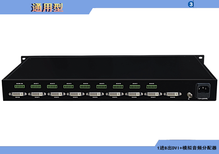 1進(jìn)8出DVI模擬音頻分配器,內(nèi)置數(shù)字均衡器/抖動(dòng)去除器可選,卡儂/端子/3.5mm/RCA接口,獨(dú)立/冗余供電,機(jī)架,通用型 |