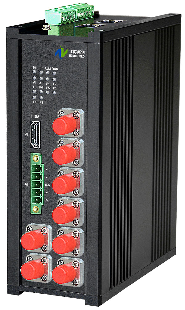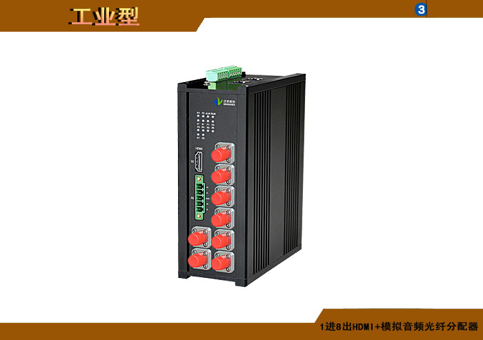 1進8出HDMI模擬音頻光纖分配器,內置數字均衡器/抖動去除器可選,卡儂/端子/3.5mm/RCA接口,獨立/冗余/總線供電(DC18~36V/5V),導軌,工業型 |