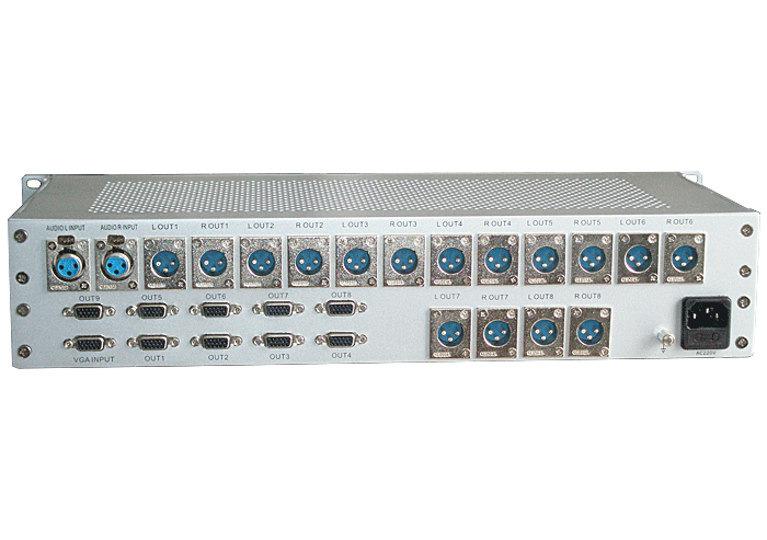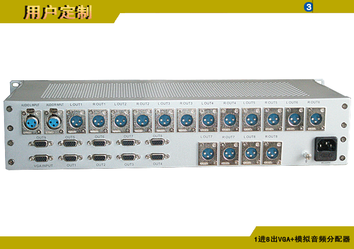 1進8出VGA模擬音頻分配器,卡儂/端子/3.5mm/RCA接口,獨立/冗余供電,機架,通用型 |
