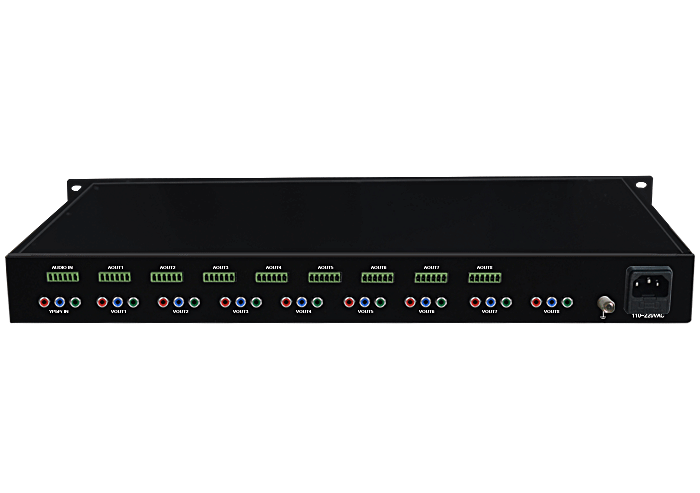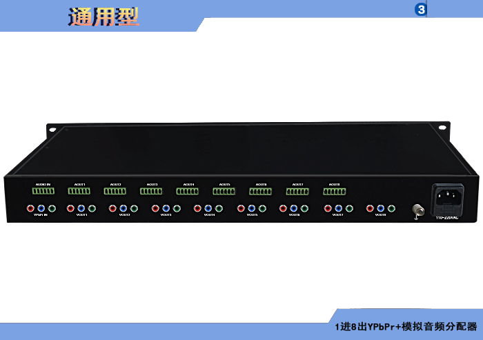 配置 1進8出YPbPr模擬音頻分配器,卡儂/端子/3.5mm/RCA接口,獨立/冗余供電,機架,通用型